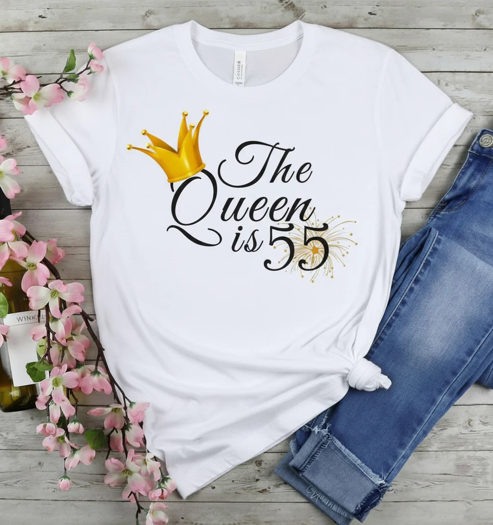 - T Shirts Features:Â Queen is 55 original birthday day gifts tee shirts for women, vintage birthday retro short sleeve crew neck casual t shirts , classy letter print sayings Queen is 55Â shirts for men and women, birthday greeting party cute relaxed-fit t shirts , the humorous and unique design of this t-shirt can express your true thoughts. Let this vintage birthday printed t-shirts show your unique charm.